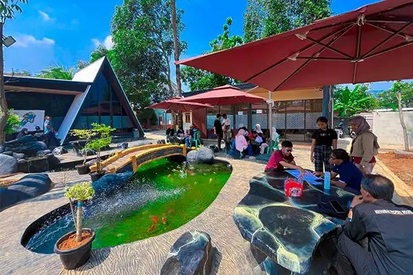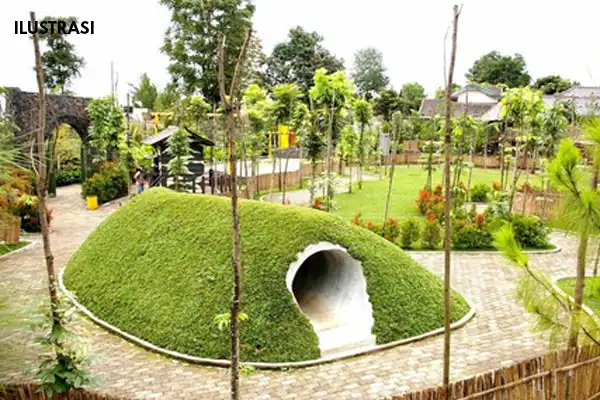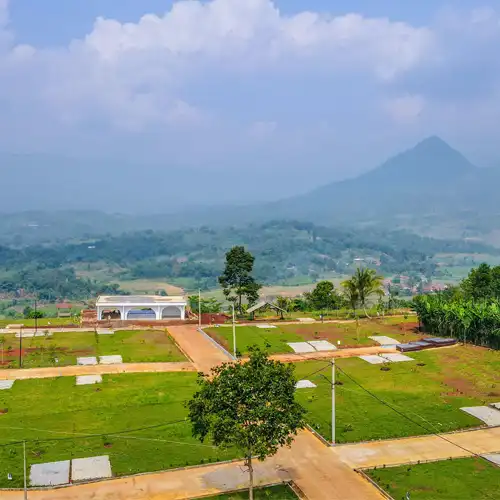 Nikmati kenyamanan maksimal dengan fasilitas lengkap, termasuk gerbang utama, villa glamping, kolam renang, lapangan basket, kids playground, musholla, toilet, dan jalan cor beton.